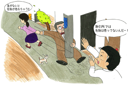 ホーム > キソのキソを教えてください ![]() ![]() ![]() ![]() ![]() ![]() 1994年から96年末にかけて世界の商品市場を沸かせたとうもろこしの大相場。マチダ先生の熱のこもった経験談を聴かされて商品先物取引に大いに興味を持ったユミちゃんだけど、まだまだわからないことだらけ。てか、とりあえず理解したのは、とうもろこしの先物取引を売っているのは農産物の商品取引所でってことかな(?)。ちゃうちゃうユミちゃん。商品取引所じゃなにも売ってないんだってば。サキモノ買いたいって言うけれど、それはもうちょっと勉強してからにしようよ。