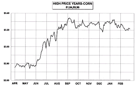 はい、ごめんなさい。シカゴとうもろこしは約2年かけて蓄積した上昇分約3.4ドルの半分を返すほどの急落を7月後半だけで演じ、その年の末には、結局2ドル50セント台まで下げたんだ。東京も同様で、トン当たり2万1千円調の相場が1万2千円台まで下げたはずだよ。なんともドラマチックな展開さ。そうそう、これを見てごらん。これがその時の価格をグラフにしたもの。トレーダーは「価格チャート」と呼んでいる。